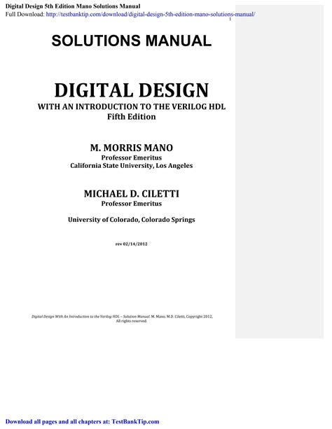 Pdf Download Digital design mano 5th edition solution manual How To Download Free PDF PDF